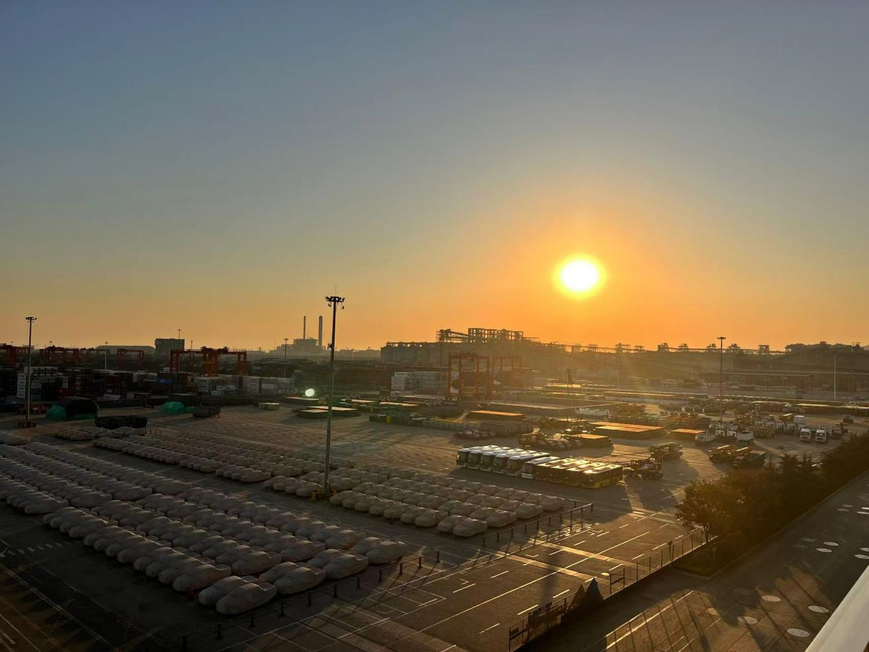 2025年11月18日,夕照余晖,日照港以圭表化功课擘画新时间口岸文雅远景。新华网吕爱玲 摄