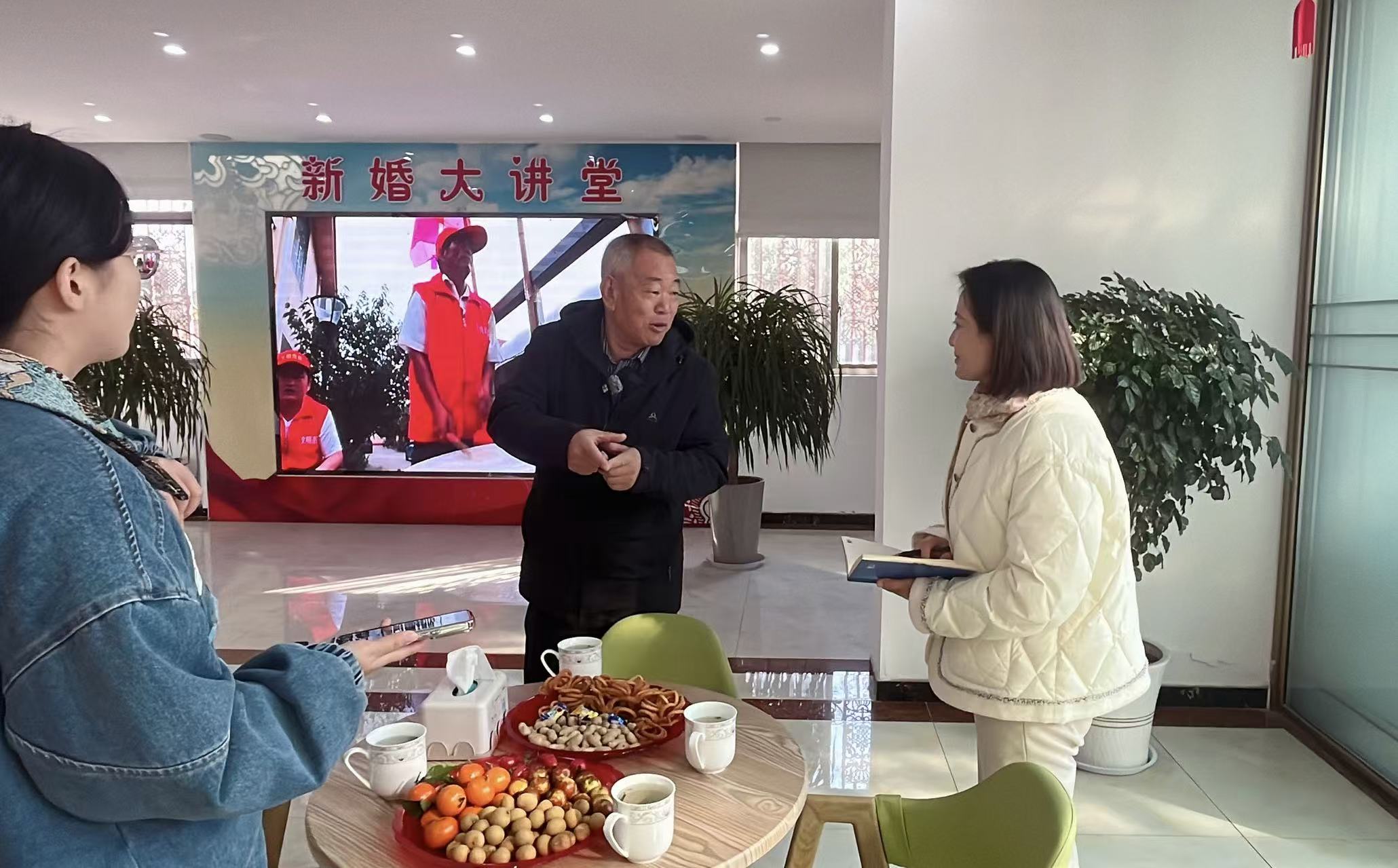2025年11月19日,“新风书记”侯加明向报道组一行先容文雅婚俗。新华网发 马颢嘉摄